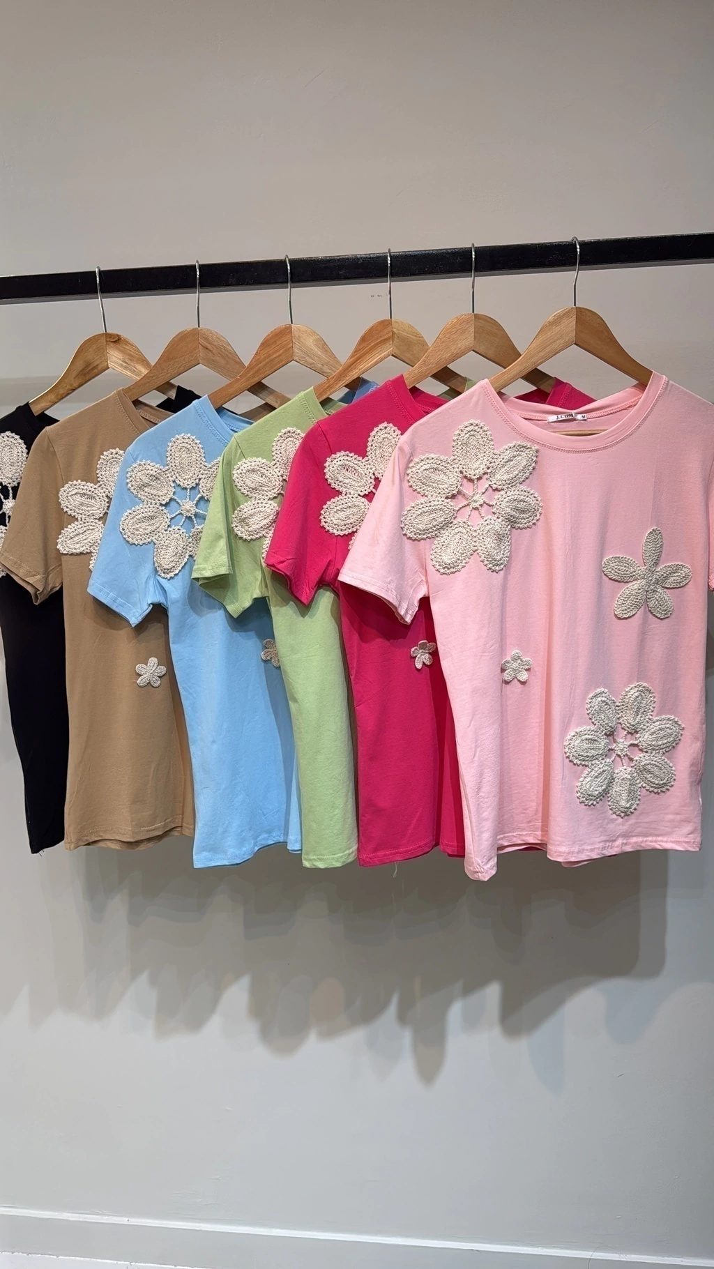 Nossa Blusa July♥ te garante atemporalidade e praticidade para o dia a dia. Confeccionada em uma malha de algodão super fresquinha e confortável para os dias quentes de verão. Apresenta detalhes de flores bordadas que proporcionam um charme apaixonante.