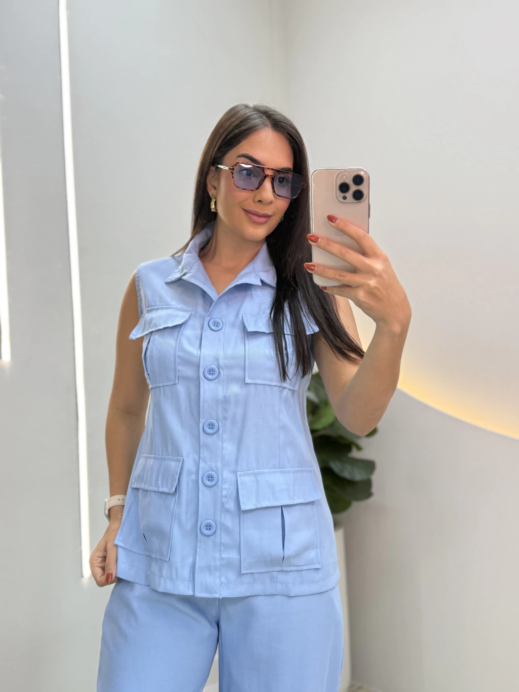 CONJUNTO TIANA♥. O Conjunto Tiana é a definição de elegância descomplicada! Inspirado no nosso queridinho Conjunto Marina, ele traz a mesma blusa com gola estilo polo, agora combinada com uma calça pantalona fluida, que garante movimento, conforto e muito charme.