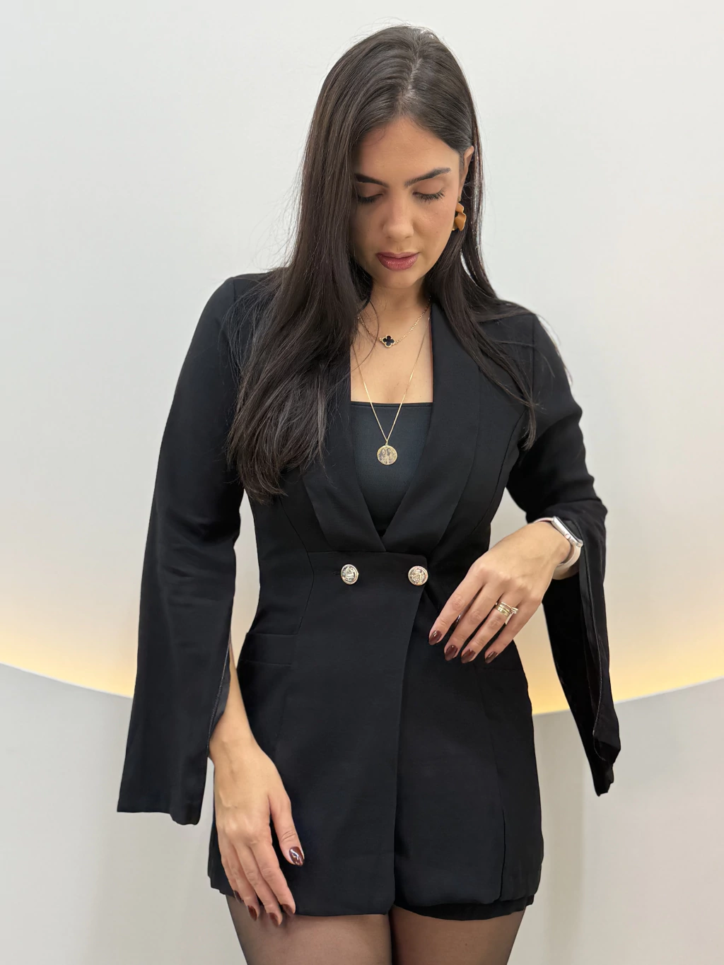 Conjunto Verona♥. Elegante e sofisticado, composto por um casaco super estiloso que possui bolsos e gola lapela. E por um short com elástico no cós e fechamento por zíper lateral.