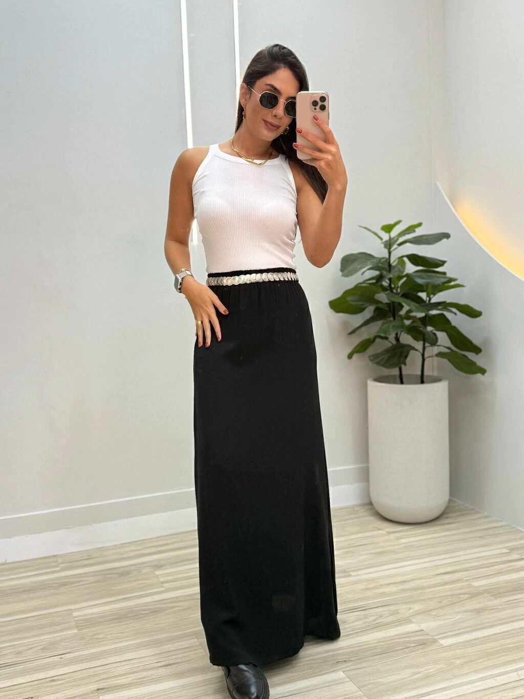 Saia Analu♥. Perfeita para quem ama um visual sofisticado e confortável. Confeccionada em tecido leve e fluído, possui elastico na parte da cintura. Versátil que permite diversas combinações, tanto para o dia a dia ou para produções mais formais.