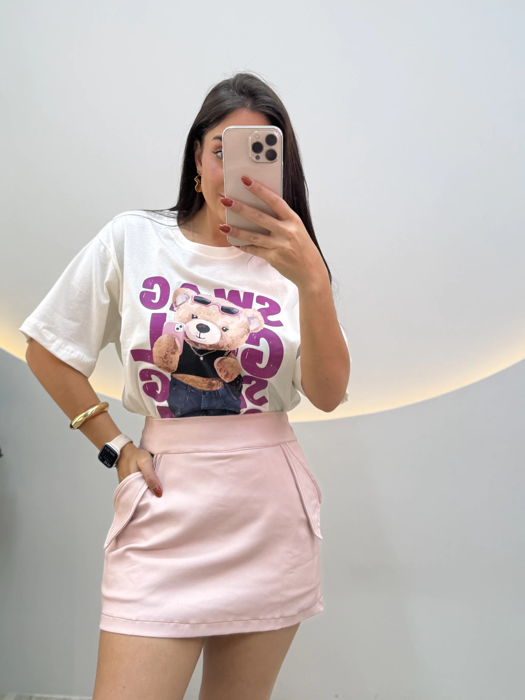 SHORT SAIA TAISE♥. O Short Saia Taise é a escolha perfeita para quem ama praticidade sem abrir mão do charme. Confeccionado em uma mistura leve e resistente de algodão e poliéster, ele oferece toque suave, caimento impecável e durabilidade para o dia a dia.