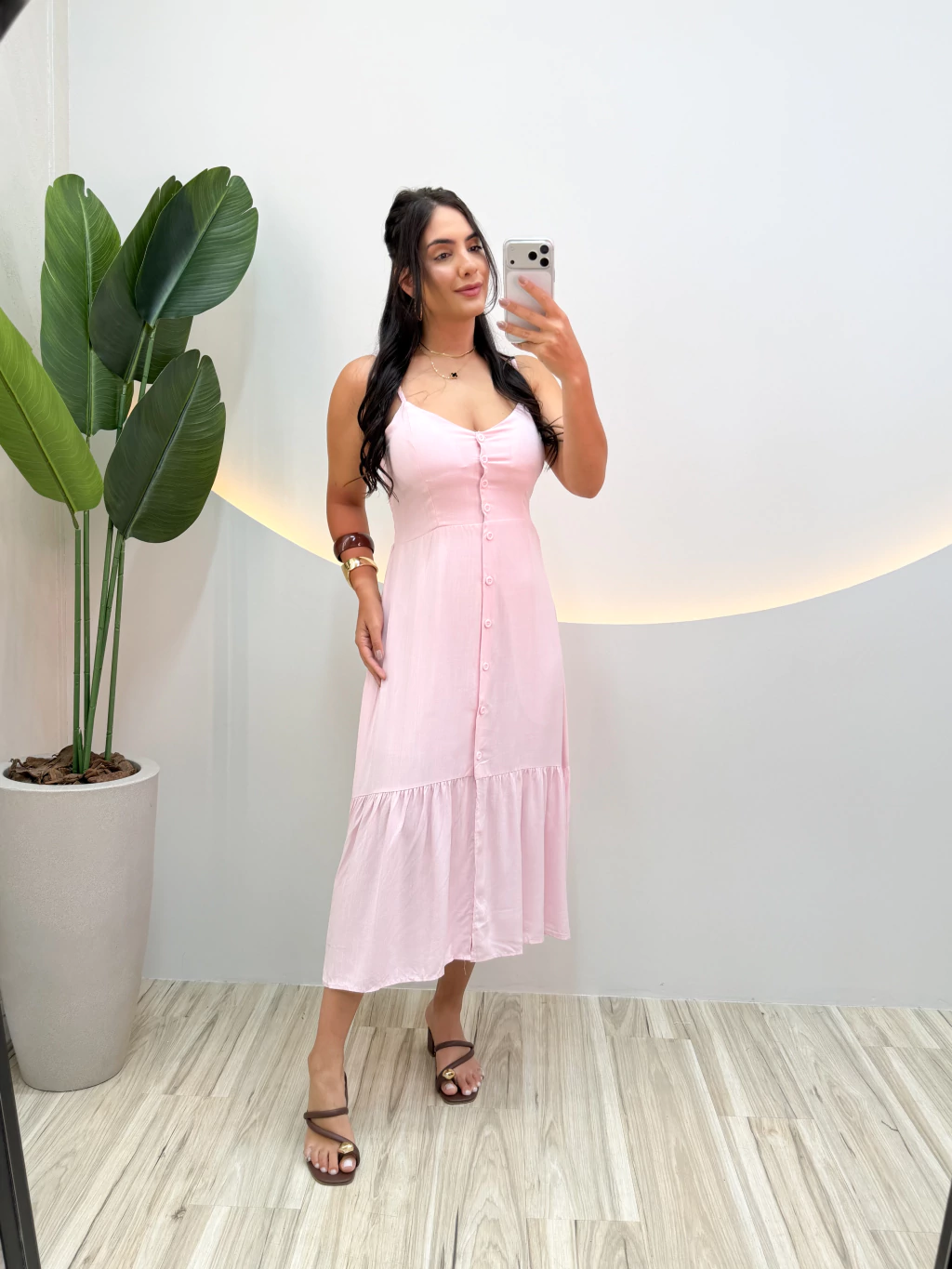 Com comprimento midi, ele traz um caimento leve e elegante, ideal para diversas ocasiões — do passeio àquele evento especial.