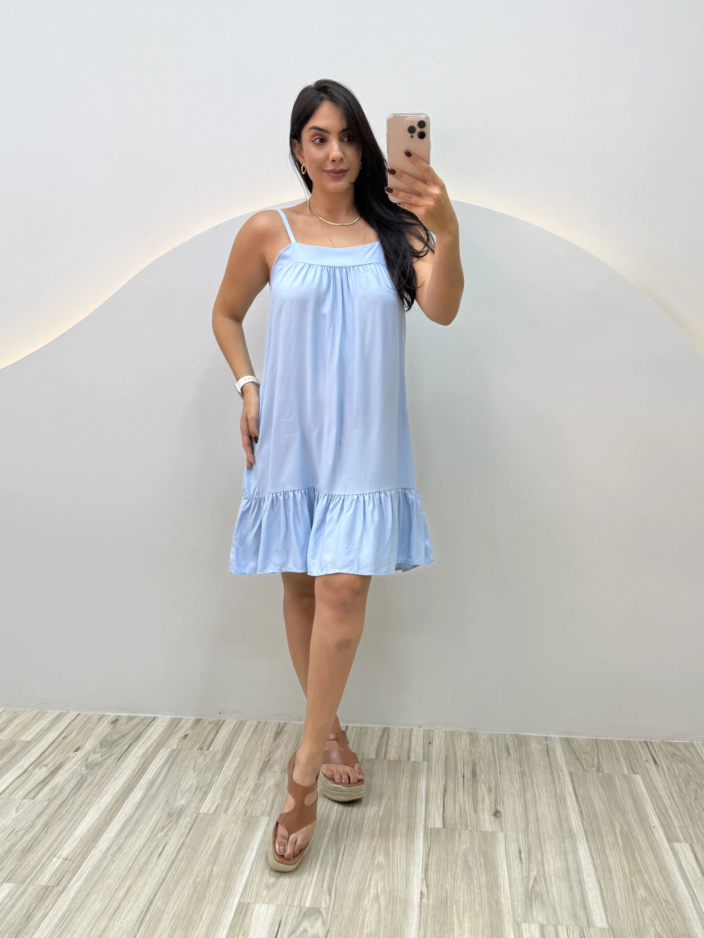 VESTIDO MILE♥. O Vestido Mile é aquele look fresquinho e estiloso que não tem erro! Curtinho, soltinho e com um caimento super fluido, ele é perfeito pra te acompanhar nos dias mais quentes. As alcinhas com regulagem garantem o ajuste ideal, e o detalhe de amarração nas costas com um leve vazado deixa tudo ainda mais delicado e moderno. É versátil, confortável e fácil de amar — combina com rasteirinha, tênis ou aquele saltinho pra um toque mais arrumado. Um verdadeiro queridinho do verão!